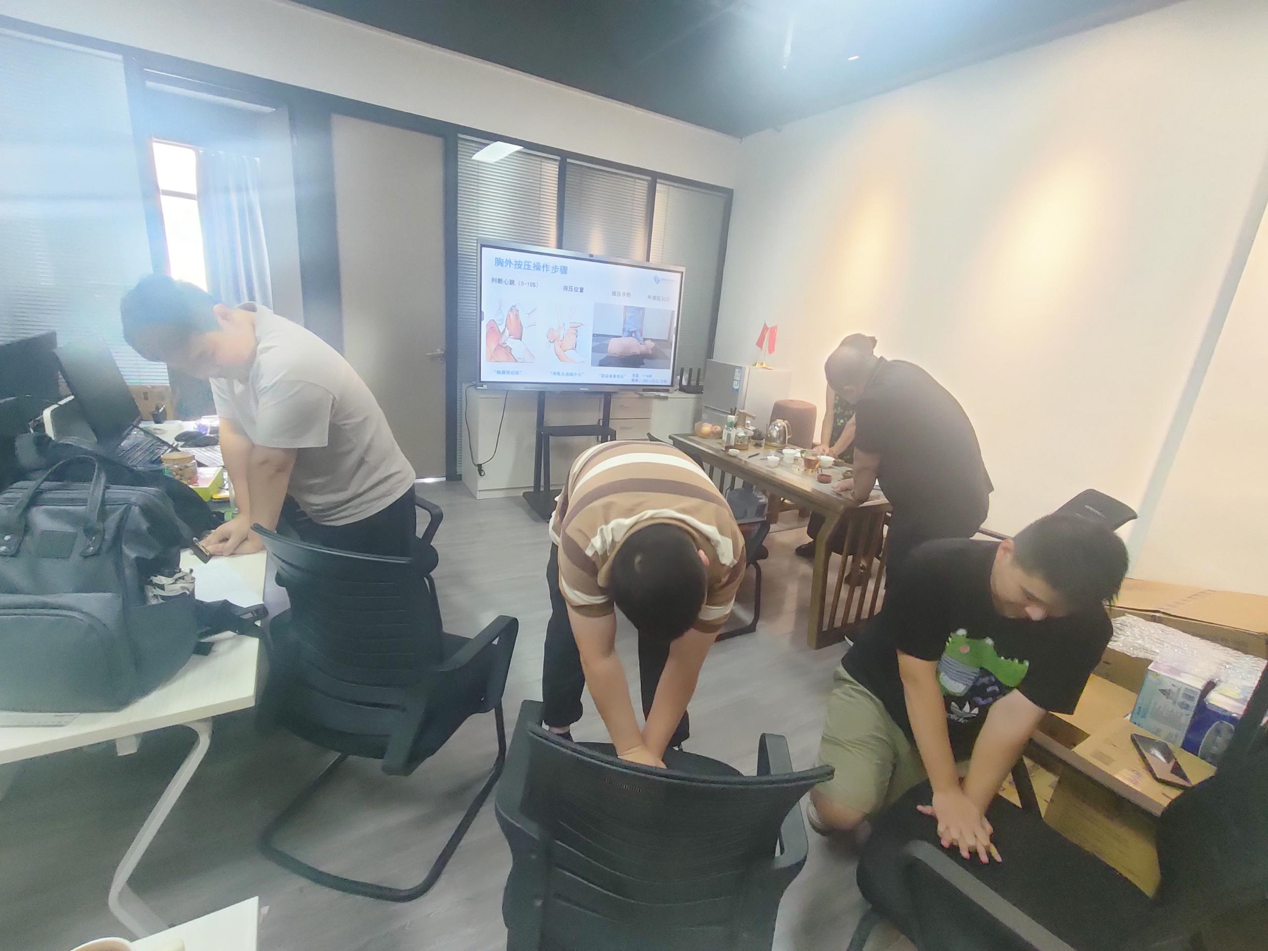 在讲座过程中,老师通过生动的互动交流和亲身示范,充分调动了职工们的学习兴趣与热情。现场老师不仅详细教授了心肺复苏(CPR)的操作步骤,还深入浅出地分享了职业病、高发病、慢性病的预防与改善知识,并结合实际案例提供了实用的健康管理方法。此外,老师还针对职工们提出的健康问题进行了耐心解答与专业指导,帮助大家更好地理解并应用健康知识。