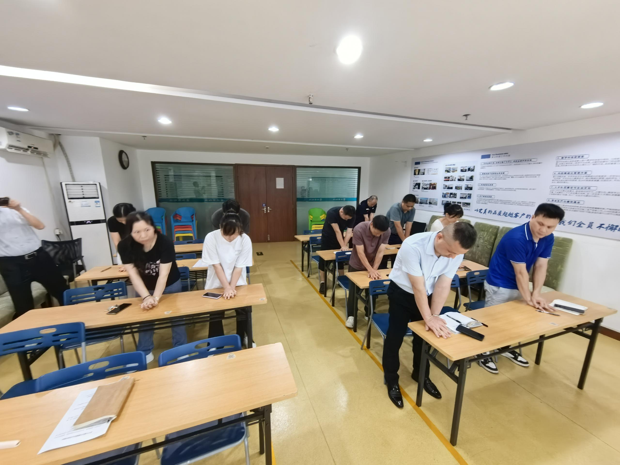 在讲座过程中,老师通过生动的互动交流和亲身示范,充分调动了职工们的学习兴趣与热情。现场老师不仅详细教授了心肺复苏(CPR)的操作步骤,还深入浅出地分享了职业病、高发病、慢性病的预防与改善知识,并结合实际案例提供了实用的健康管理方法。此外,老师还针对职工们提出的健康问题进行了耐心解答与专业指导,帮助大家更好地理解并应用健康知识。