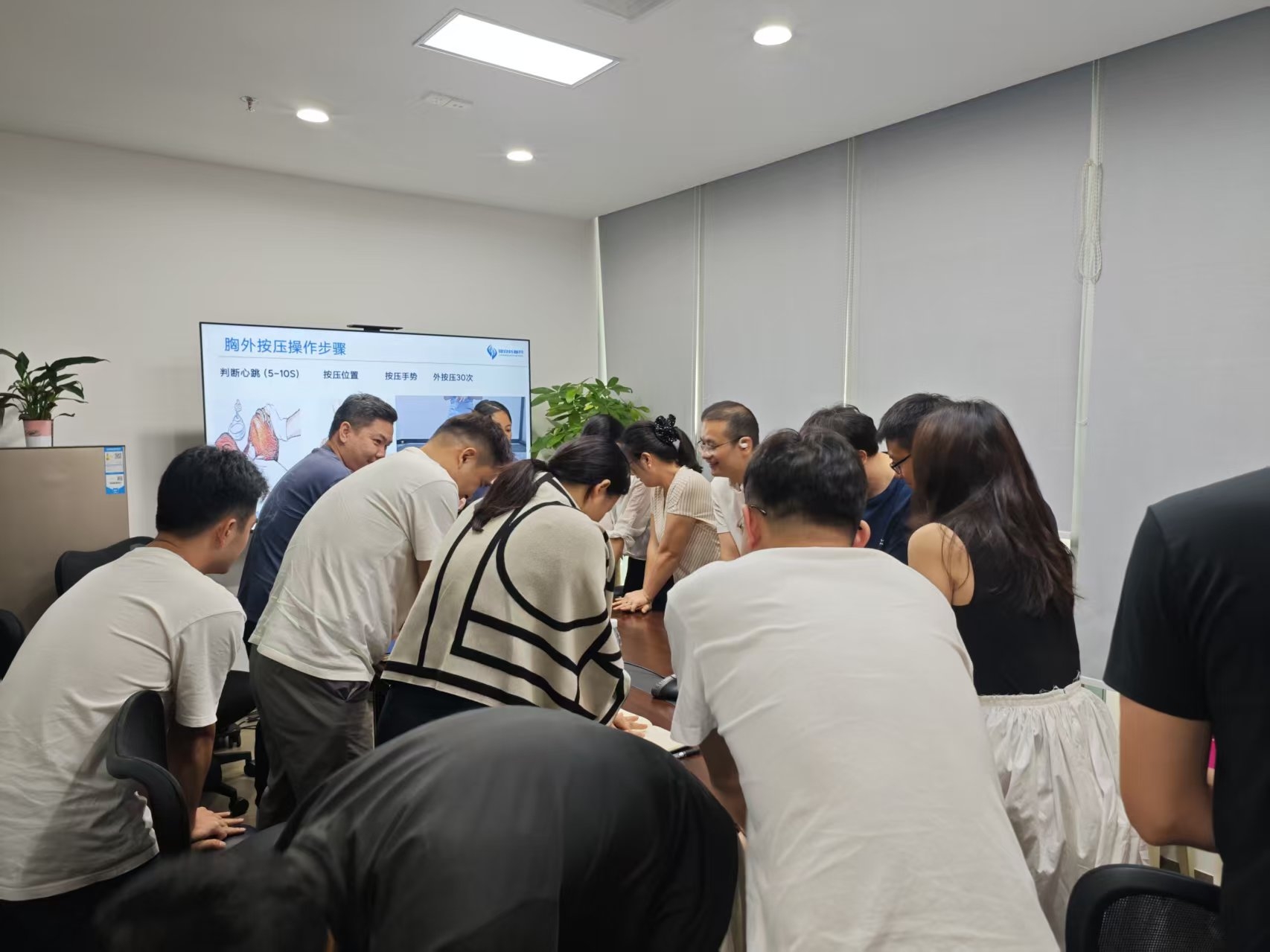 在讲座过程中,老师通过生动的互动交流和亲身示范,充分调动了职工们的学习兴趣与热情。现场老师不仅详细教授了心肺复苏(CPR)的操作步骤,还深入浅出地分享了职业病、高发病、慢性病的预防与改善知识,并结合实际案例提供了实用的健康管理方法。此外,老师还针对职工们提出的健康问题进行了耐心解答与专业指导,帮助大家更好地理解并应用健康知识。