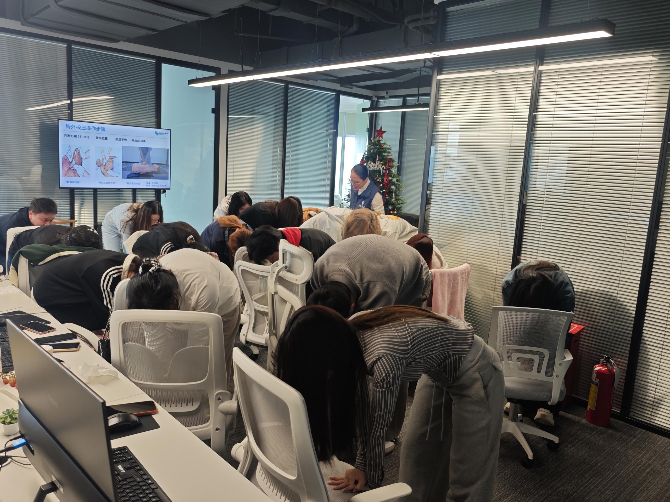 在讲座过程中,老师通过生动的互动交流和亲身示范,充分调动了职工们的学习兴趣与热情。现场老师不仅详细教授了心肺复苏(CPR)的操作步骤,还深入浅出地分享了职业病、高发病、慢性病的预防与改善知识,并结合实际案例提供了实用的健康管理方法。此外,老师还针对职工们提出的健康问题进行了耐心解答与专业指导,帮助大家更好地理解并应用健康知识。