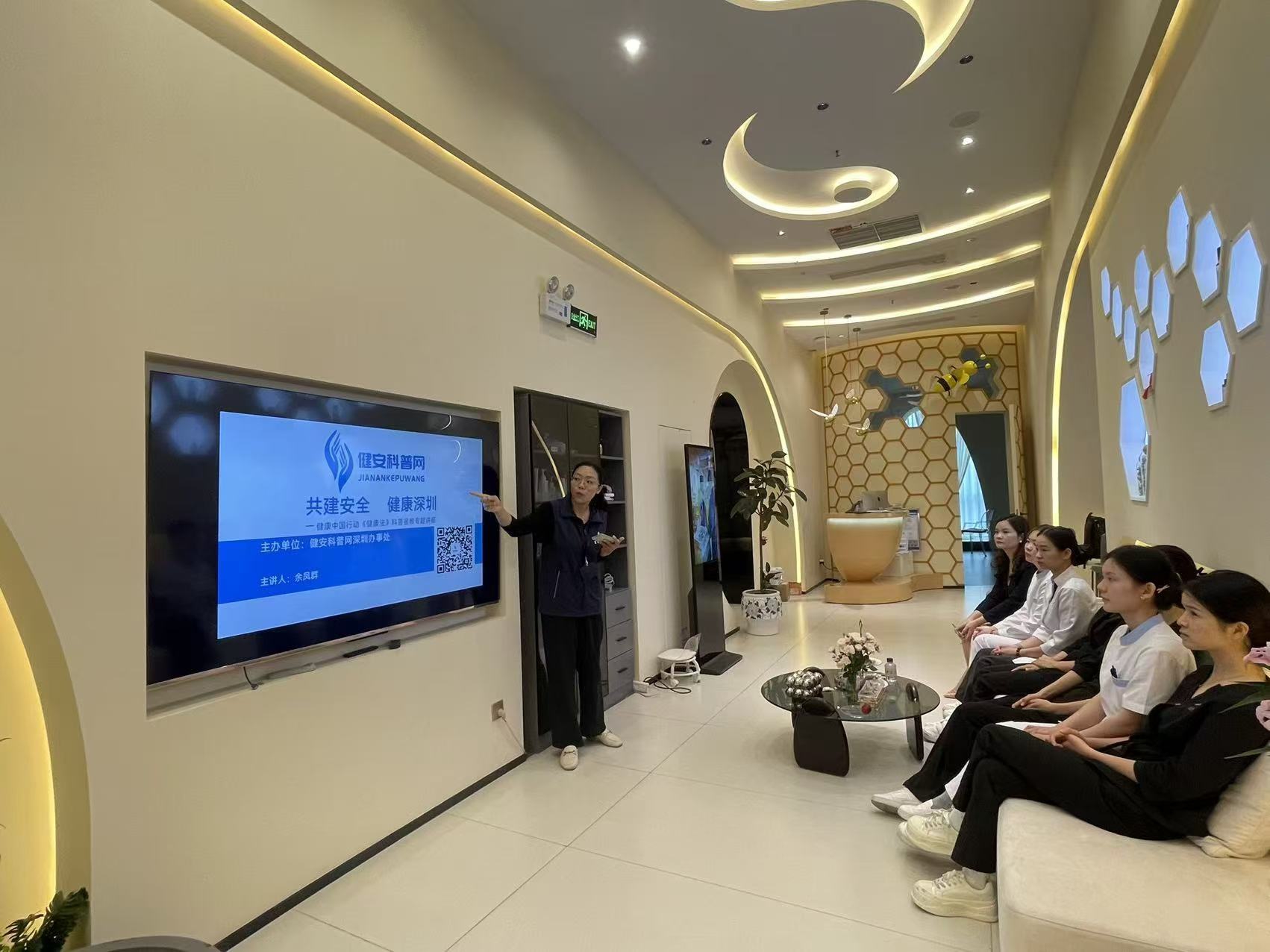 2025年11月3日上午11点,广东省深圳市山喜美容有限公司邀请健安科普网余老师,成功举办了一场以“共建安全 健康深圳”为主题的健康安全知识公益讲座。