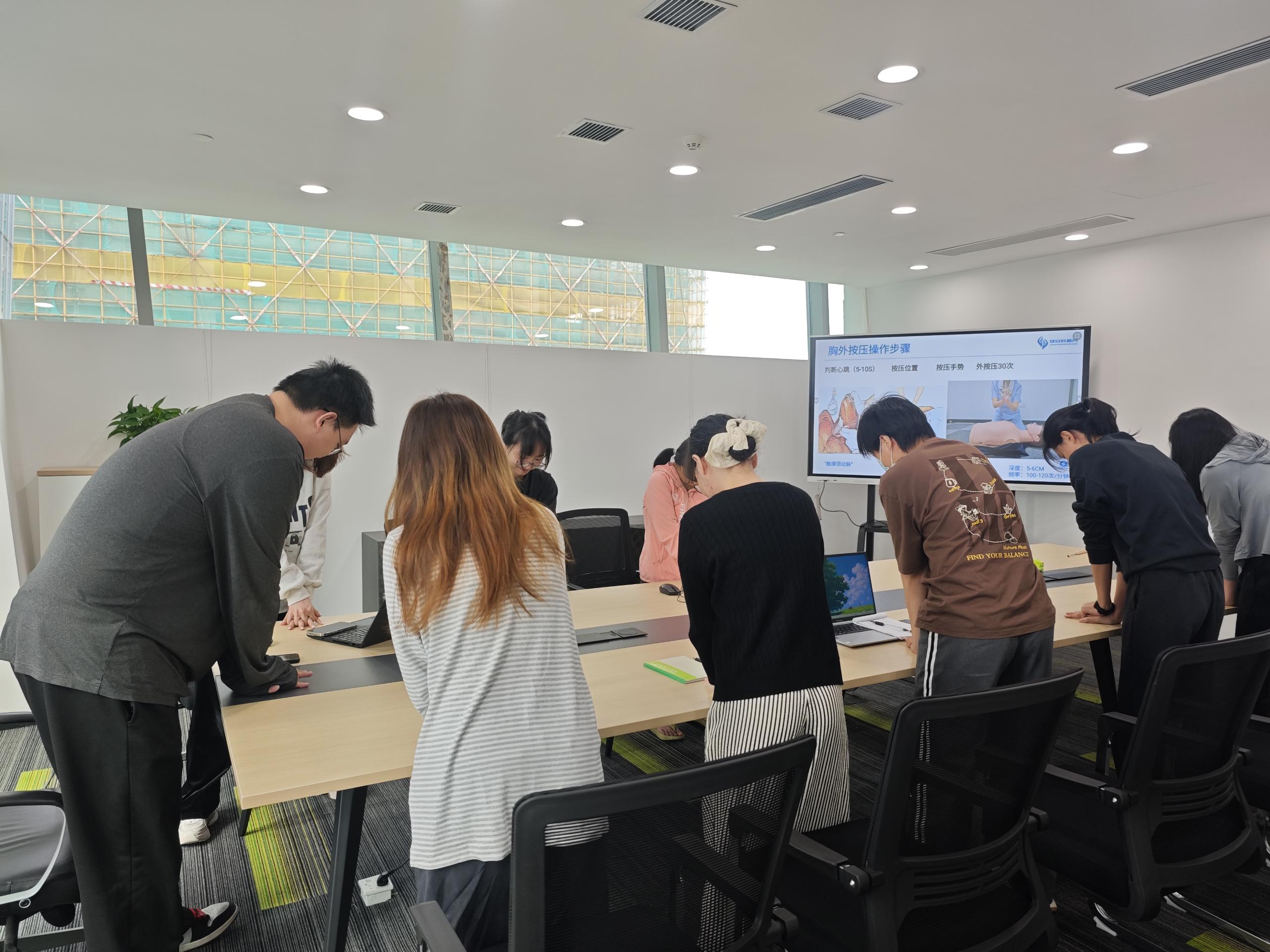 在讲座过程中,老师通过生动的互动交流和亲身示范,充分调动了职工们的学习兴趣与热情。现场老师不仅详细教授了心肺复苏(CPR)的操作步骤,还深入浅出地分享了职业病、高发病、慢性病的预防与改善知识,并结合实际案例提供了实用的健康管理方法。此外,老师还针对职工们提出的健康问题进行了耐心解答与专业指导,帮助大家更好地理解并应用健康知识。
