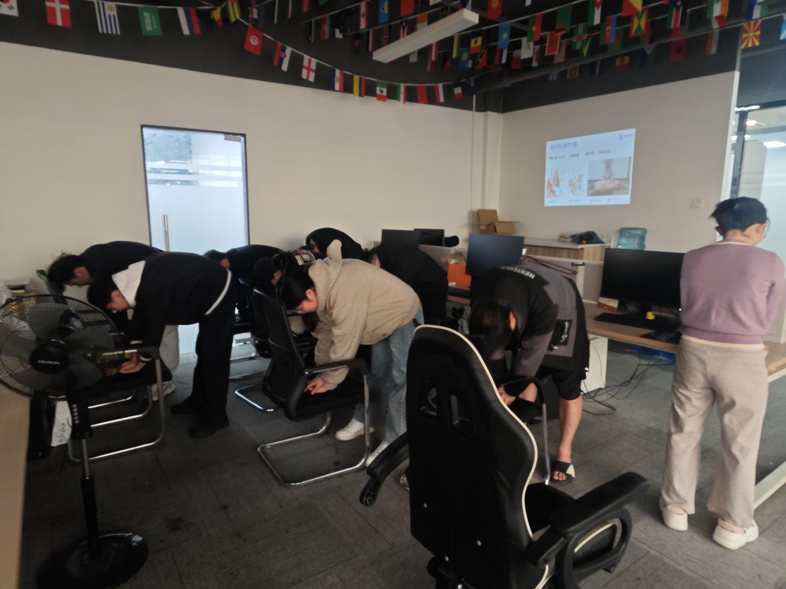 在讲座过程中,老师通过生动的互动交流和亲身示范,充分调动了职工们的学习兴趣与热情。现场老师不仅详细教授了心肺复苏(CPR)的操作步骤,还深入浅出地分享了职业病、高发病、慢性病的预防与改善知识,并结合实际案例提供了实用的健康管理方法。此外,老师还针对职工们提出的健康问题进行了耐心解答与专业指导,帮助大家更好地理解并应用健康知识。