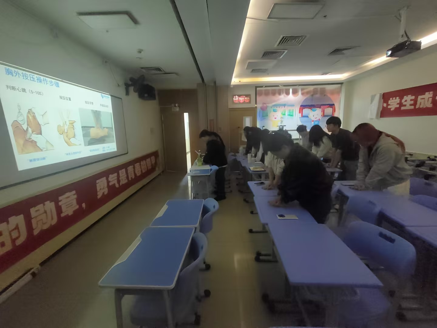 在讲座过程中,老师通过生动的互动交流和亲身示范,充分调动了职工们的学习兴趣与热情。现场老师不仅详细教授了心肺复苏(CPR)的操作步骤,还深入浅出地分享了职业病、高发病、慢性病的预防与改善知识,并结合实际案例提供了实用的健康管理方法。此外,老师还针对职工们提出的健康问题进行了耐心解答与专业指导,帮助大家更好地理解并应用健康知识。
