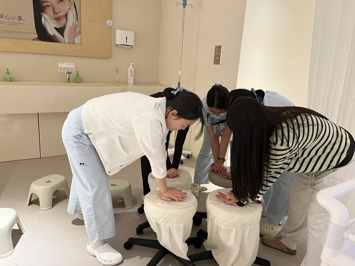 在讲座过程中,老师通过生动的互动交流和亲身示范,充分调动了职工们的学习兴趣与热情。现场老师不仅详细教授了心肺复苏(CPR)的操作步骤,还深入浅出地分享了职业病、高发病、慢性病的预防与改善知识,并结合实际案例提供了实用的健康管理方法。此外,老师还针对职工们提出的健康问题进行了耐心解答与专业指导,帮助大家更好地理解并应用健康知识。