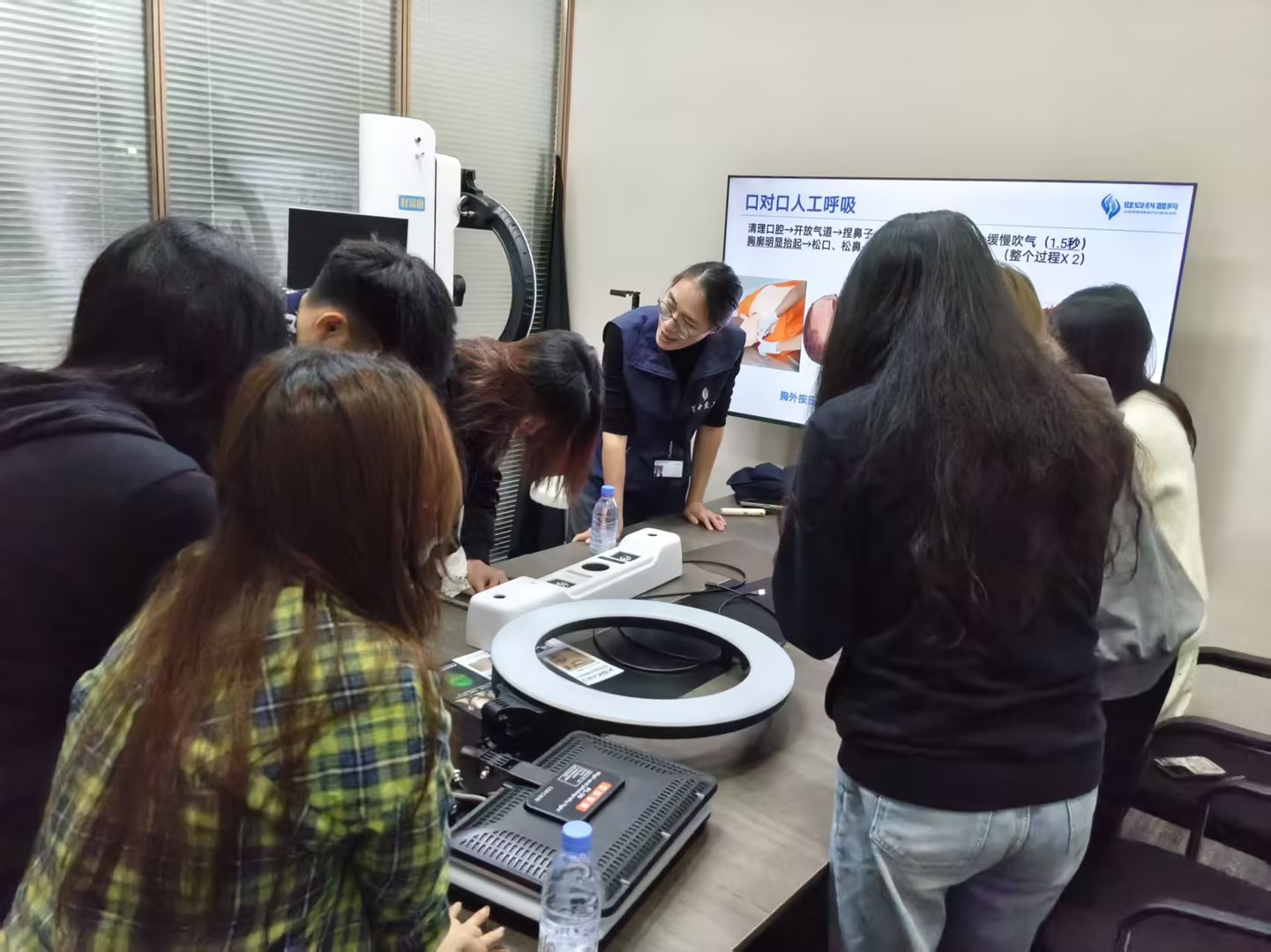 在讲座过程中,老师通过生动的互动交流和亲身示范,充分调动了职工们的学习兴趣与热情。现场老师不仅详细教授了心肺复苏(CPR)的操作步骤,还深入浅出地分享了职业病、高发病、慢性病的预防与改善知识,并结合实际案例提供了实用的健康管理方法。此外,老师还针对职工们提出的健康问题进行了耐心解答与专业指导,帮助大家更好地理解并应用健康知识。