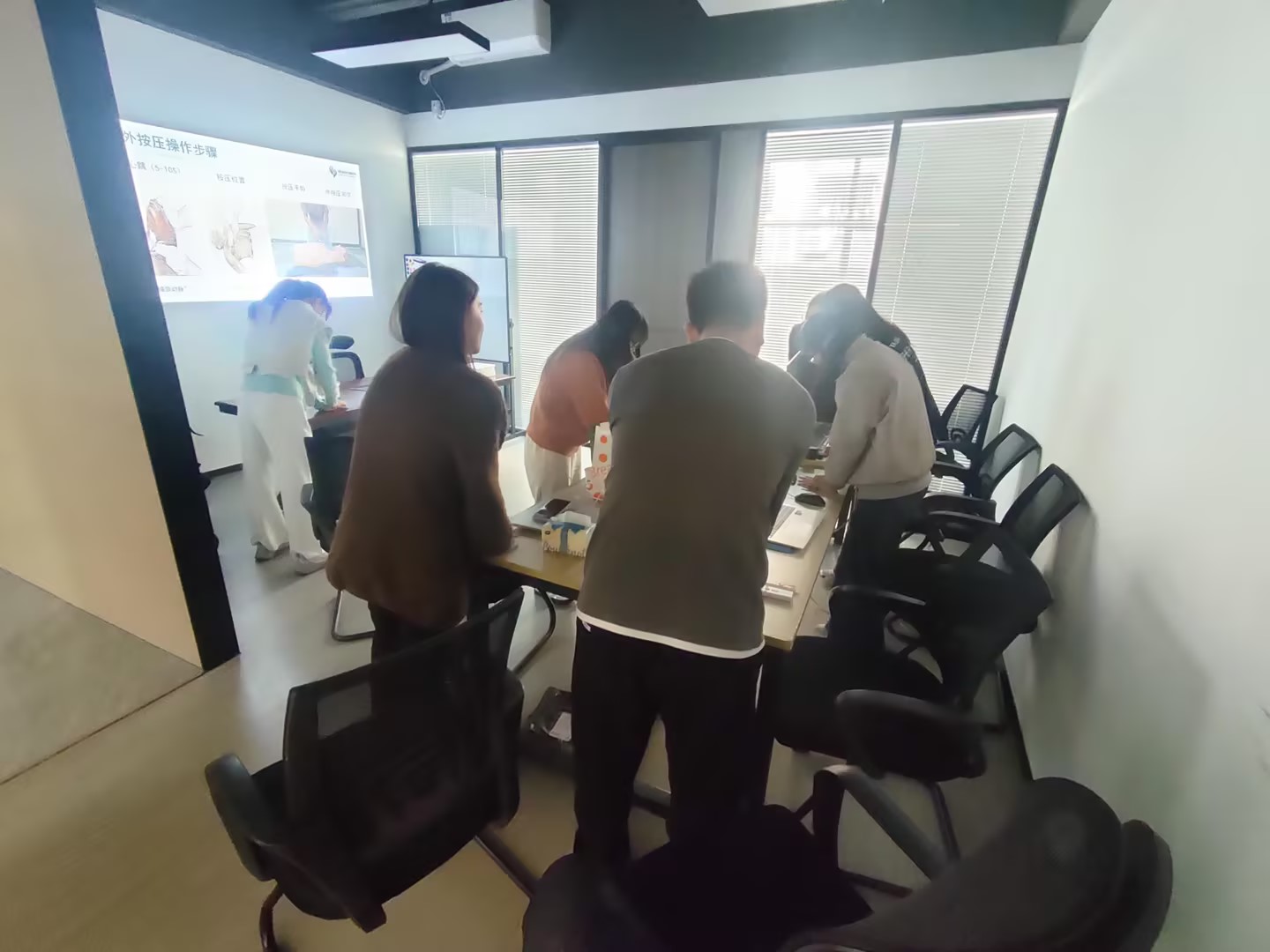 在讲座过程中,老师通过生动的互动交流和亲身示范,充分调动了职工们的学习兴趣与热情。现场老师不仅详细教授了心肺复苏(CPR)的操作步骤,还深入浅出地分享了职业病、高发病、慢性病的预防与改善知识,并结合实际案例提供了实用的健康管理方法。此外,老师还针对职工们提出的健康问题进行了耐心解答与专业指导,帮助大家更好地理解并应用健康知识。