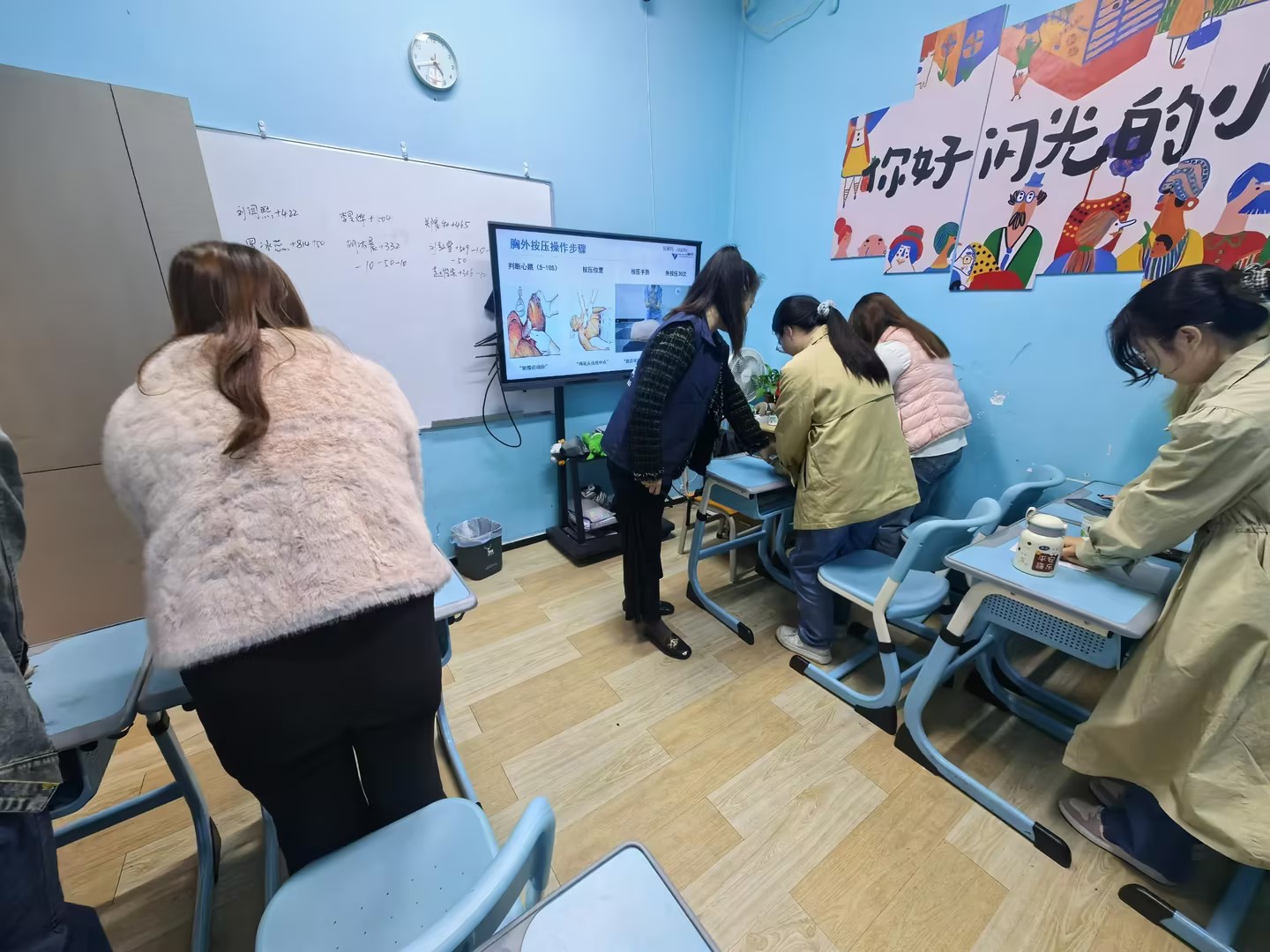 在讲座过程中,老师通过生动的互动交流和亲身示范,充分调动了职工们的学习兴趣与热情。现场老师不仅详细教授了心肺复苏(CPR)的操作步骤,还深入浅出地分享了职业病、高发病、慢性病的预防与改善知识,并结合实际案例提供了实用的健康管理方法。此外,老师还针对职工们提出的健康问题进行了耐心解答与专业指导,帮助大家更好地理解并应用健康知识。