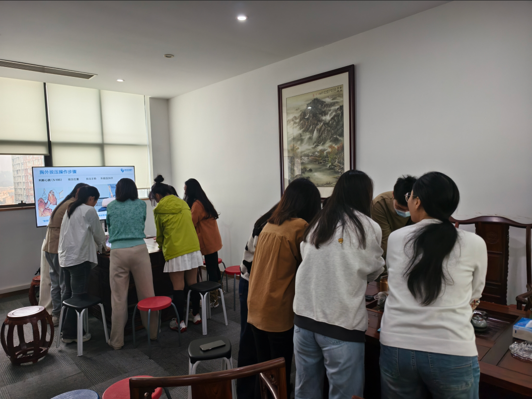 在讲座过程中,老师通过生动的互动交流和亲身示范,充分调动了职工们的学习兴趣与热情。现场老师不仅详细教授了心肺复苏(CPR)的操作步骤,还深入浅出地分享了职业病、高发病、慢性病的预防与改善知识,并结合实际案例提供了实用的健康管理方法。此外,老师还针对职工们提出的健康问题进行了耐心解答与专业指导,帮助大家更好地理解并应用健康知识。