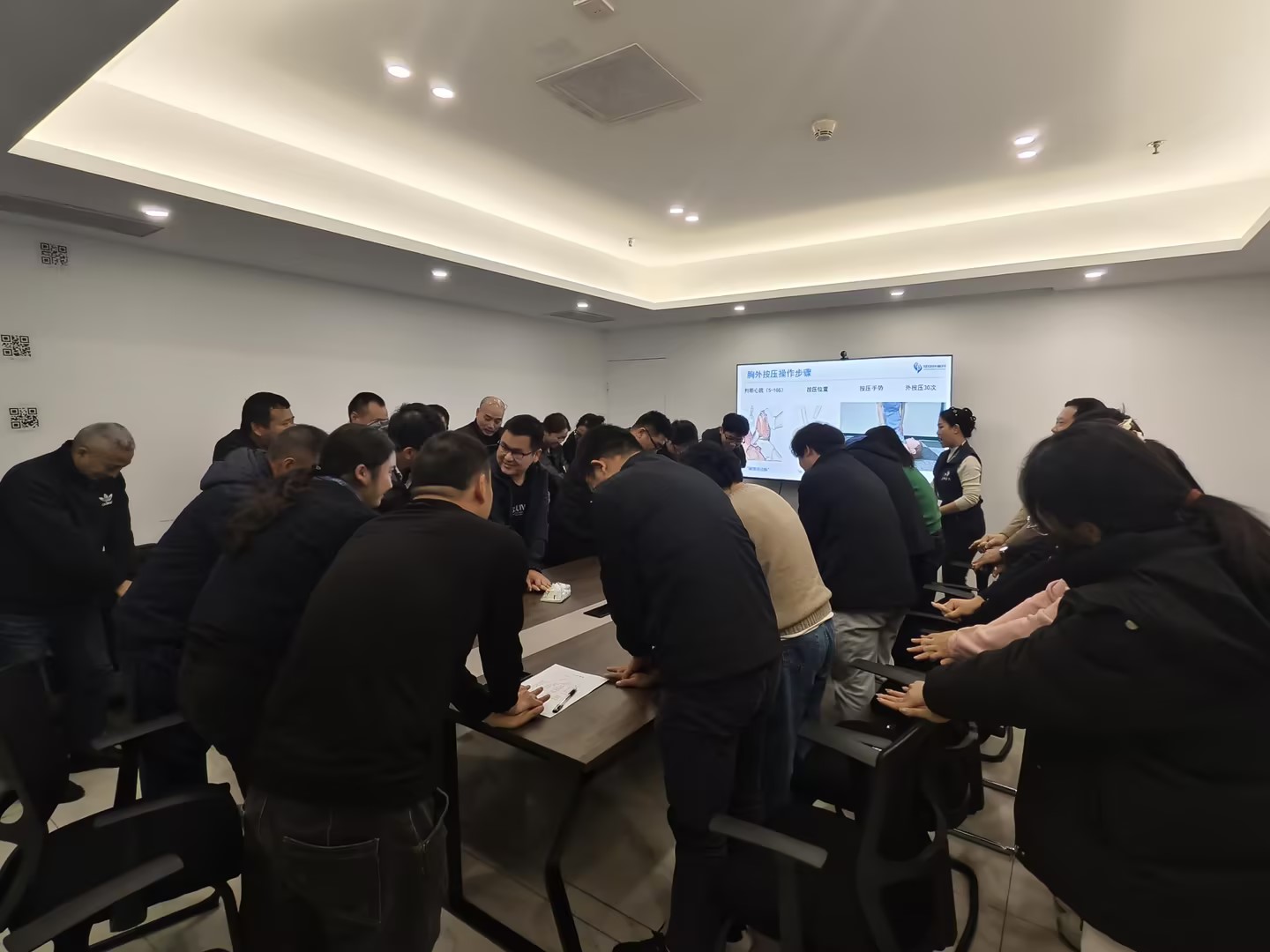 在讲座过程中,老师通过生动的互动交流和亲身示范,充分调动了职工们的学习兴趣与热情。现场老师不仅详细教授了心肺复苏(CPR)的操作步骤,还深入浅出地分享了职业病、高发病、慢性病的预防与改善知识,并结合实际案例提供了实用的健康管理方法。此外,老师还针对职工们提出的健康问题进行了耐心解答与专业指导,帮助大家更好地理解并应用健康知识。