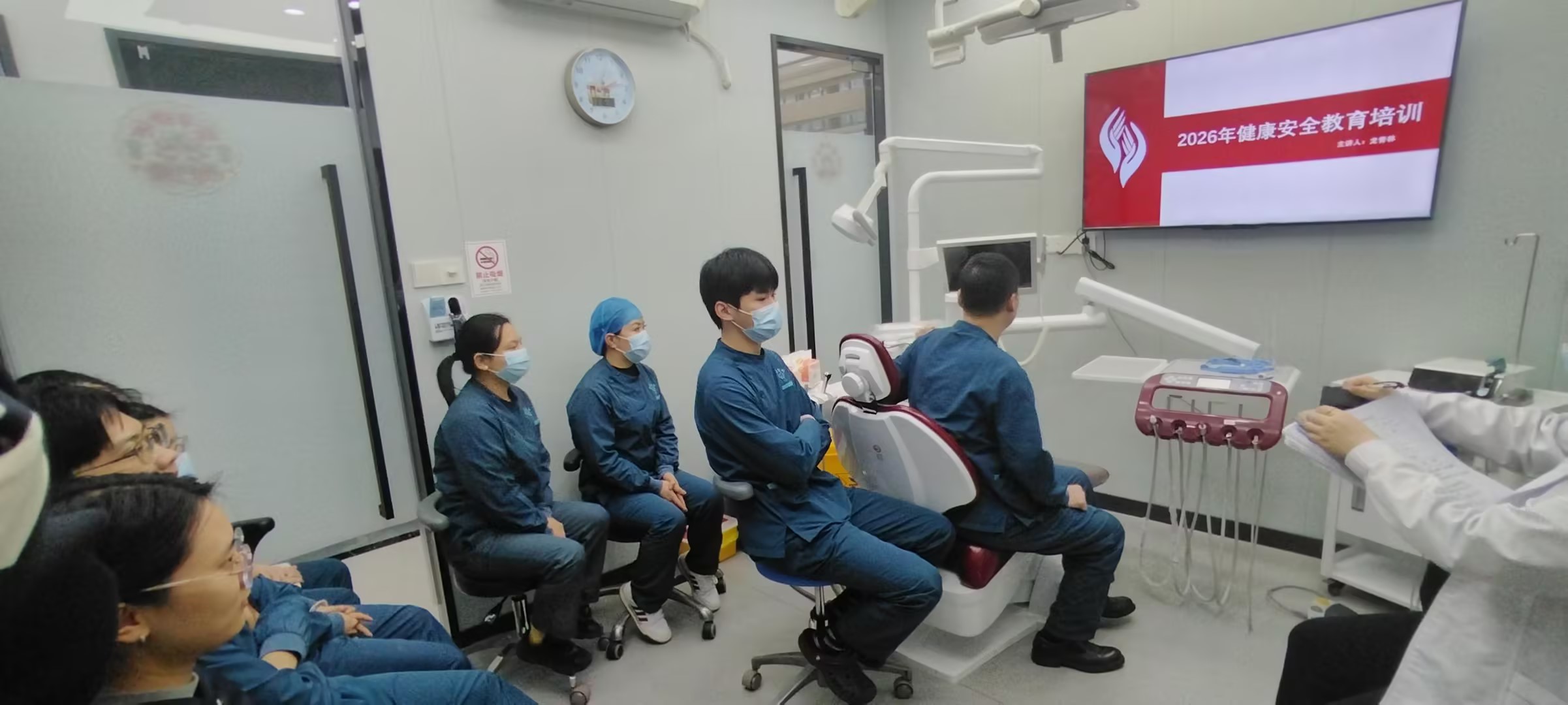 2026年1月16日下午14点,广东省深圳市启飞齿科连锁(石岩店)邀请健安科普网龙老师,成功举办了一场以“共建安全 健康深圳”为主题的健康安全知识公益讲座。