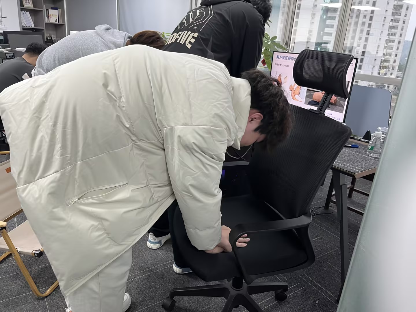 在讲座过程中,老师通过生动的互动交流和亲身示范,充分调动了职工们的学习兴趣与热情。现场老师不仅详细教授了心肺复苏(CPR)的操作步骤,还深入浅出地分享了职业病、高发病、慢性病的预防与改善知识,并结合实际案例提供了实用的健康管理方法。此外,老师还针对职工们提出的健康问题进行了耐心解答与专业指导,帮助大家更好地理解并应用健康知识。