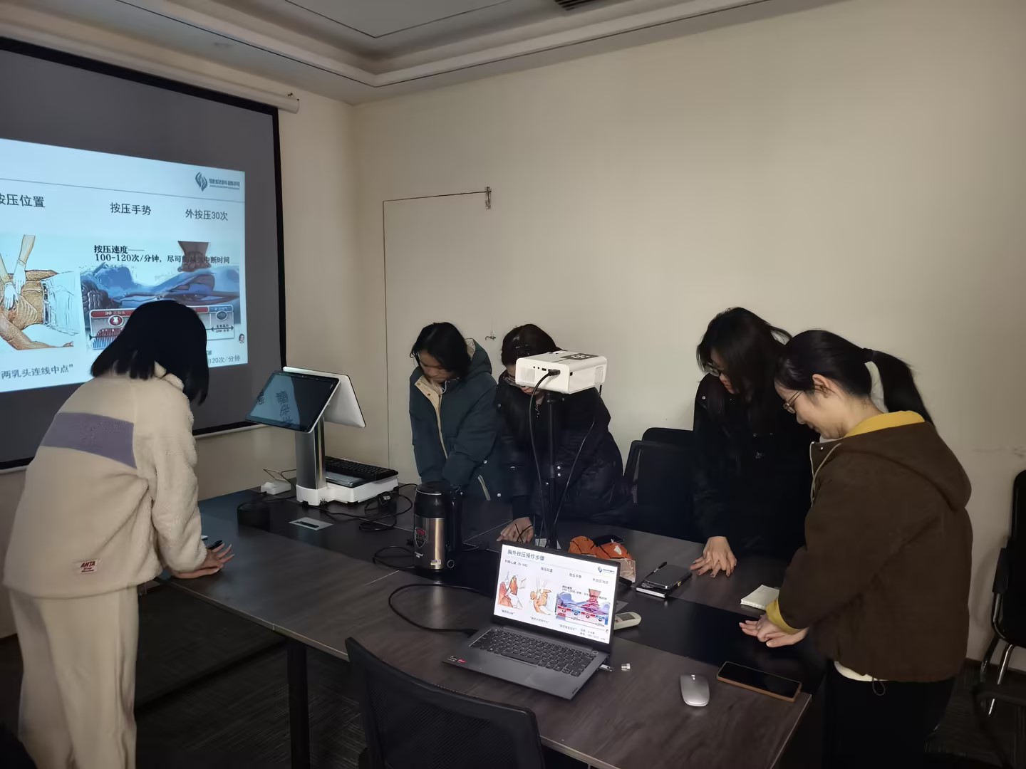 在讲座过程中,老师通过生动的互动交流和亲身示范,充分调动了职工们的学习兴趣与热情。现场老师不仅详细教授了心肺复苏(CPR)的操作步骤,还深入浅出地分享了职业病、高发病、慢性病的预防与改善知识,并结合实际案例提供了实用的健康管理方法。此外,老师还针对职工们提出的健康问题进行了耐心解答与专业指导,帮助大家更好地理解并应用健康知识。